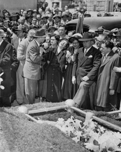 UNITED STATES – CIRCA 2000: The wife of slain garment district worker William Lurye breaks down at his funeral in the Carmel Cemetery in Cypress Hills, Queens. She is supported by David Dubinsky, President of the International Ladies Garment Workers Union. (Photo by George Torrie/NY Daily News Archive via Getty Images)