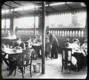 ow: The Seward Park Library opened up its rooftop as a reading room for students, both as a way to beat the heat but also to encourage the flow of air and the prevention of disease. (Courtesy NYPL, date unknown, photographer Lewis Hine)