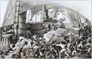 “Boarding of Triton by the privateer Hasard (ex British pilot ship Cartier), captained by Robert Surcouf”