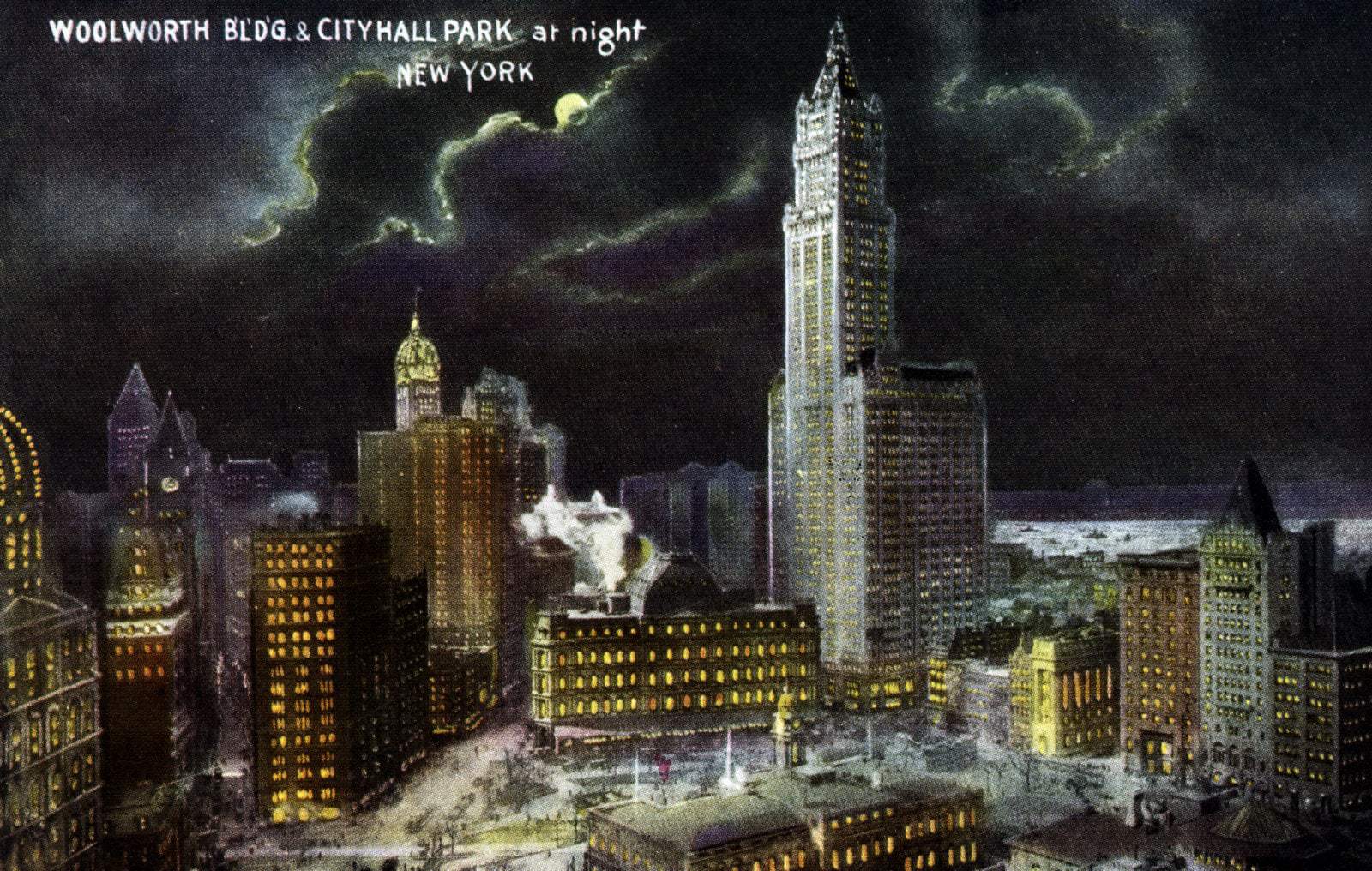 Woolworth-Bldg.-and-City-Hall-Park-at-night-NYC-1911 Woolworth Building postcard, 1911, and an extra spooky looking scene of old New York Post author By GY Post date October 15, 2025
