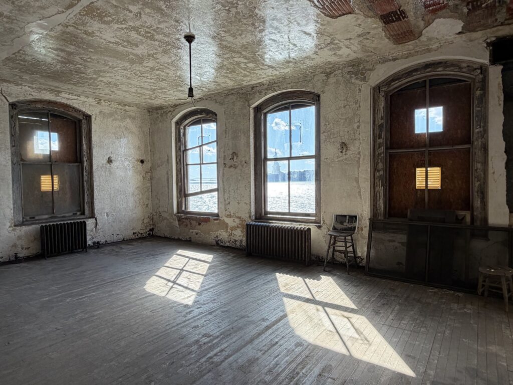 Then they pay a visit to “‘the other side”’ — the Ellis Island Immigrant Hospital — with Justin Southern and Jim Dessicino of Save Ellis Island.