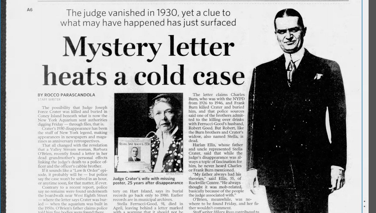 His disappearance rocked the city and captivated the nation for decades. The phrase “to pull a Crater” entered the popular lexicon. Psychics came forward with tips. Grand juries investigated. Deathbed confessions emerged decades later.