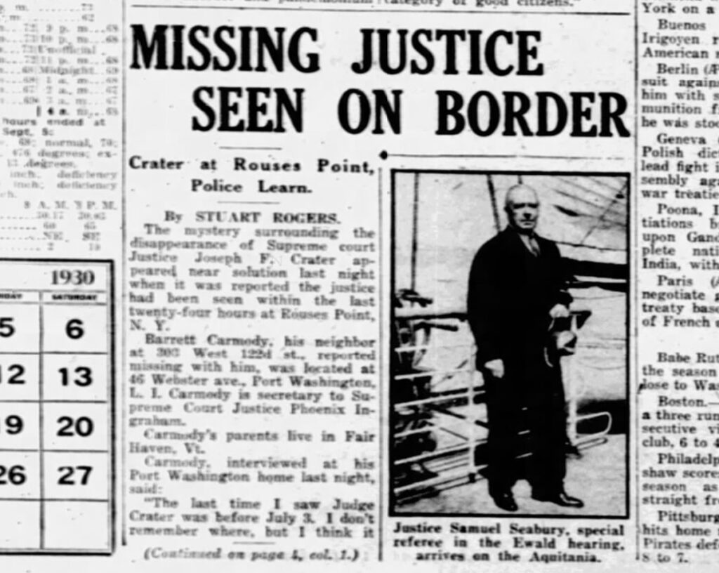 On August 6, 1930, Supreme Court Justice Joseph Force Crater stepped into a taxi on West 45th Street and vanished without a trace.