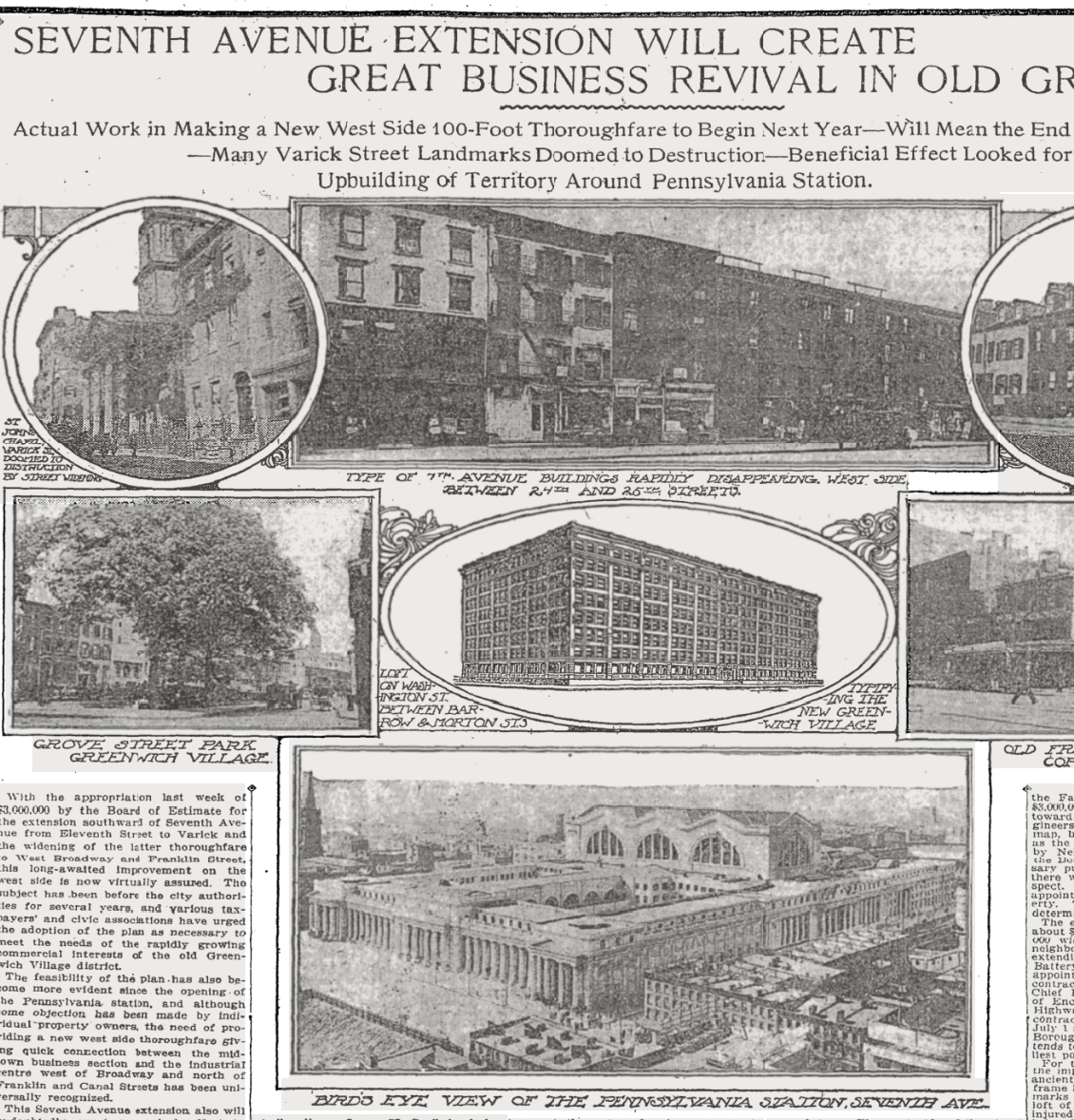 The promise of a new subway line once seemed entirely beneficial, but it brought a devastating consequence: Seventh Avenue had to be extended straight through the western Village, cutting a swath through the existing streetscape and wiping away hundreds of buildings.